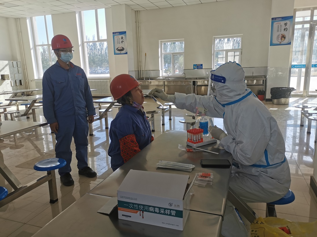 10月8日,根據(jù)阿拉善盟阿拉善高新技術產(chǎn)業(yè)開發(fā)區(qū)疫情防控部署最新要求,印發(fā)《內(nèi)蒙古揚帆新材料有限公司進一步加強新冠肺炎疫情防控工作要求》;建立疫情防控定期檢查工作機制,定期排查重點返回人員,確保外來人員溯源信息“零疏漏”,緊盯疫情防控重點區(qū)域、重點環(huán)節(jié)等風險點,開展監(jiān)督檢查,確保疫情防控“零死角”;積極配合政府開展核酸檢測工作,10月10日,按照相關要求,公司聯(lián)系醫(yī)護人員到工廠開展全體職工集中核酸檢測工作,核酸采樣前,做到了提前通知,安排到位。采樣過程中,全體職工自覺遵守防控要求,有序排隊,掃健康碼,10人一組,等候檢測。醫(yī)護人員逐一為職工做咽拭子采樣,相關工作人員在現(xiàn)場維護秩序,登記、核對信息,整個過程井然有序,采樣流程快速高效,1小時完成全體職工采樣工作。